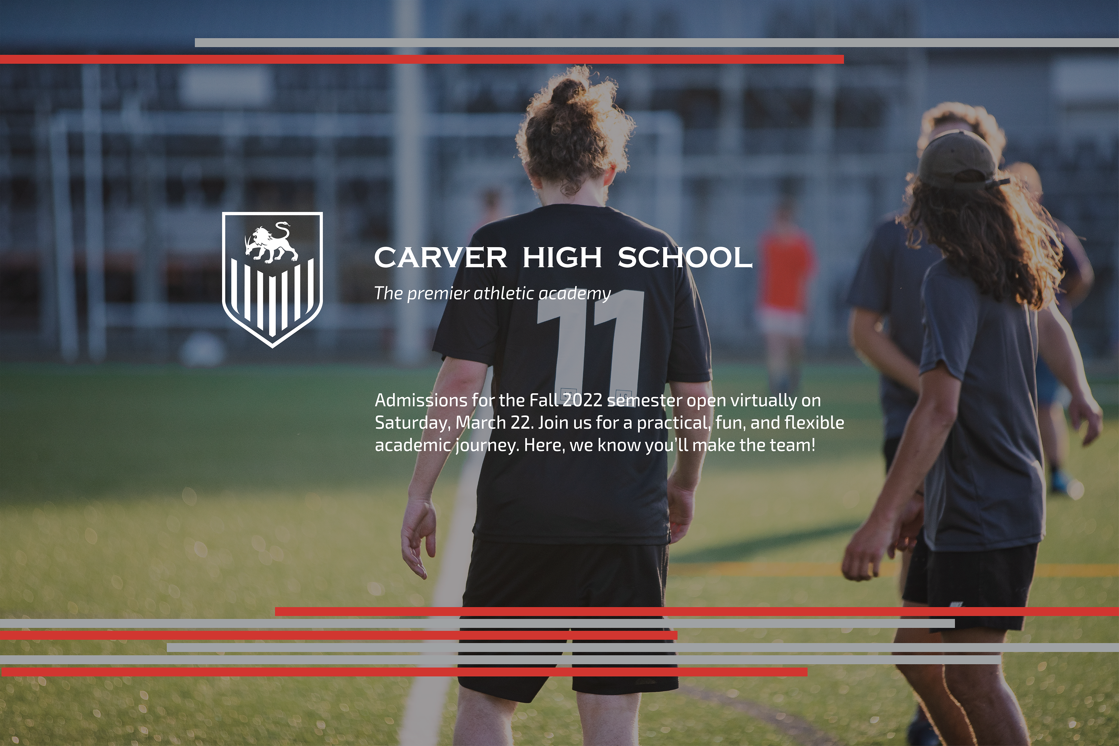 Identity crafted for a fictitious high school, represented by the Carver Chimeras in spartan red and sword silver.